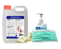 Gel desinfetante mãos ou superfícies, luvas, máscaras cirurgicas ou tecido, etc...